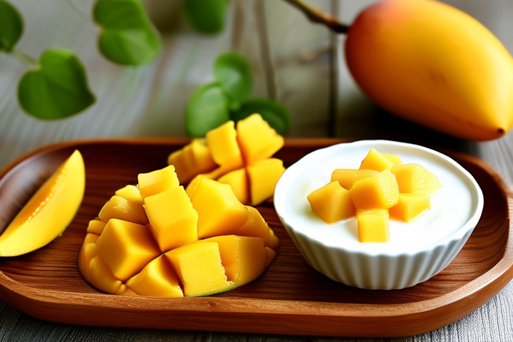 - 切块:将芒果去皮后切成小块,以便更好地与酸奶混合。