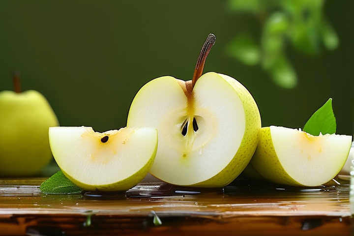 斜刀切片:用一把锋利的刀,从梨的一侧斜着切下去,这样可以确保每一片梨肉都均匀地被切出,既美观又方便食用。
