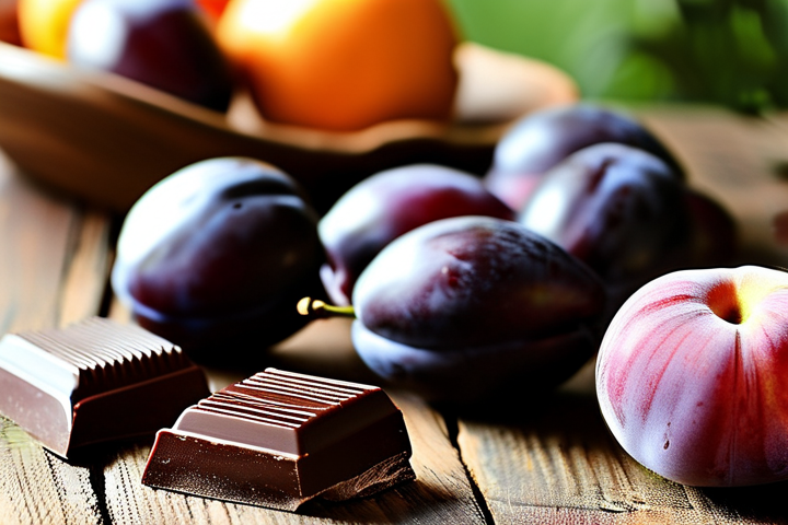 我们可以将李子切片或切块,然后将其与少量的黑巧克力混合在一起,这样,李子中的酸甜味道会与黑巧克力的浓郁口感相互融合,形成一种既清新又丰富的味道,李子中的纤维质也能增加黑巧克力的口感层次,使其更加丰富。