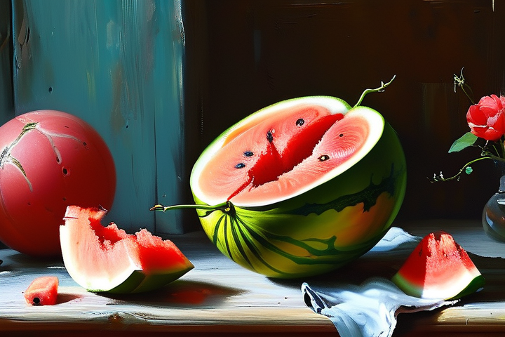 成熟的西瓜果肉应该具有弹性和光泽,吃起来口感细腻、多汁,如果果肉过硬或缺乏弹性,可能是西瓜未完全成熟或储存时间过长。
